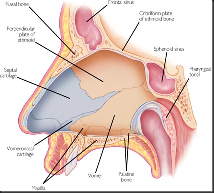 鼻中隔是由軟骨跟硬骨組合而成 : Quadrangular cartilage、Perpendicular plate、Vomer、Maxillary crest、lower lateral cartilage 以及 upper lateral cartilage,常常聽到的鼻中隔彎曲通常是這些軟硬骨交接處因為生長速度不同或是受到外力的影響而造成變形的現象 (有些人是因為生產過程而造成彎曲),鼻中隔嚴重彎曲的時候會造成氣流不順而導致鼻塞,甚至有些彎曲的地方會影響到鼻竇的通氣而導致反覆性的鼻竇炎,甚至有些人會因為鼻塞造成反覆頭痛,彎曲的地方會造成擾流而導致黏膜乾裂出血,少數的病人會因為經常性的流鼻血而就診。