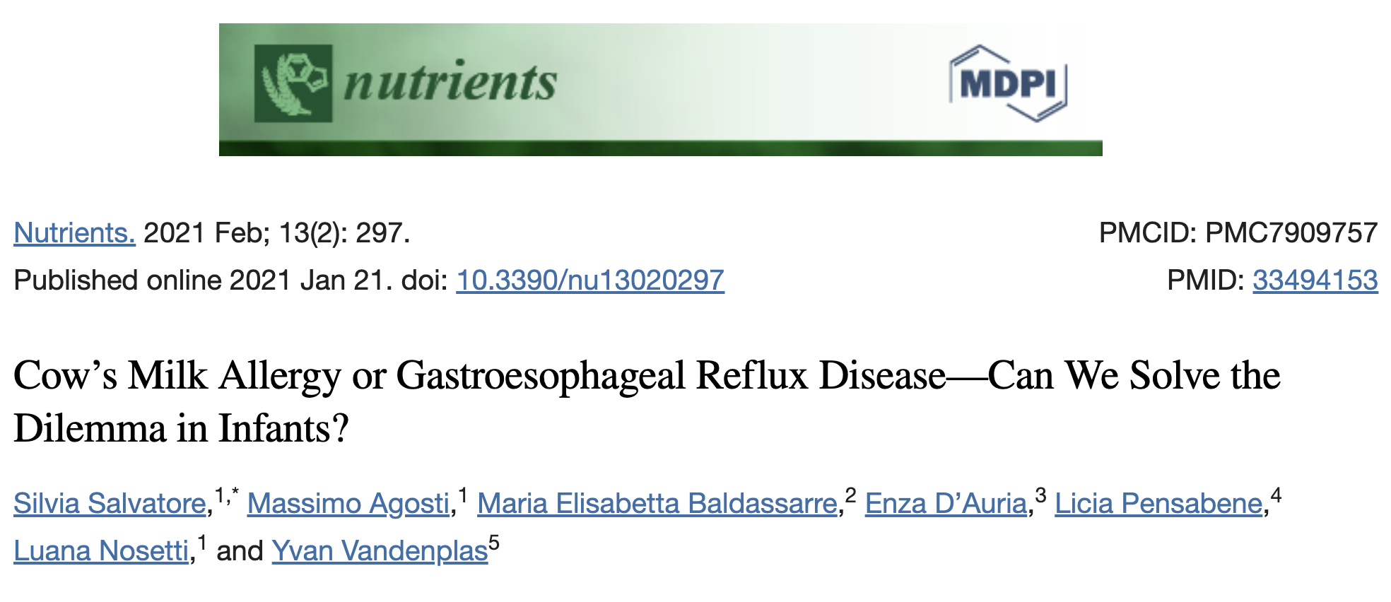文章名稱:Cow’s Milk Allergy or Gastroesophageal Reflux Disease—Can We Solve the Dilemma in Infants?