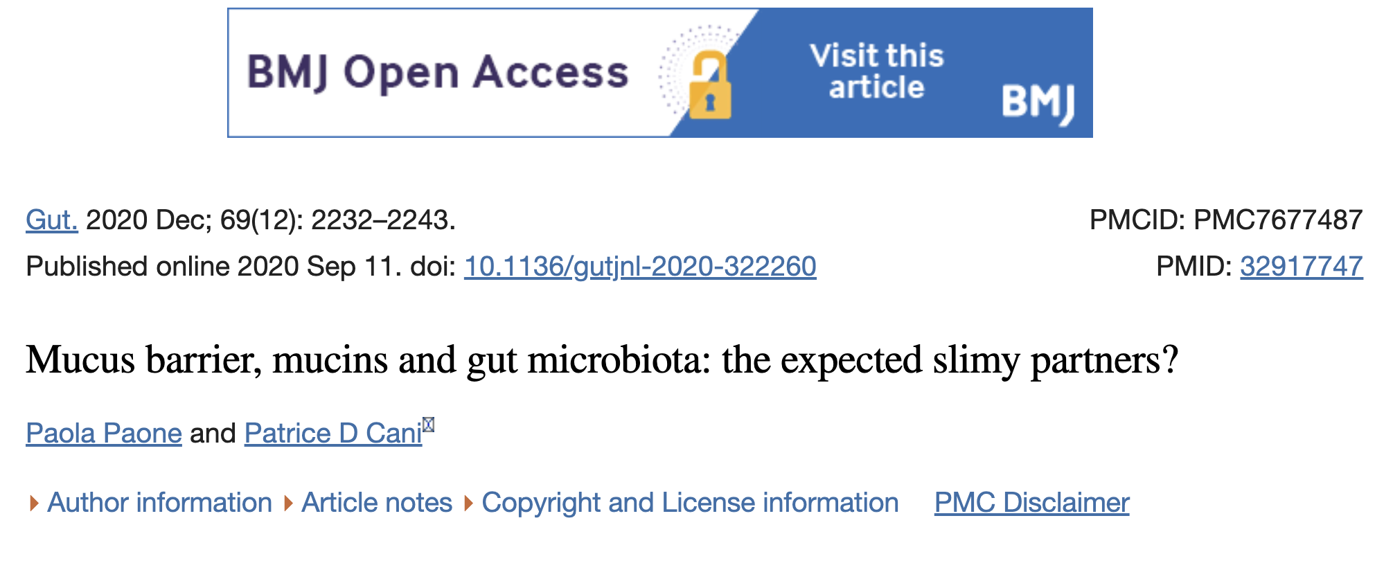 文章名稱:Mucus barrier, mucins and gut microbiota: the expected slimy partners