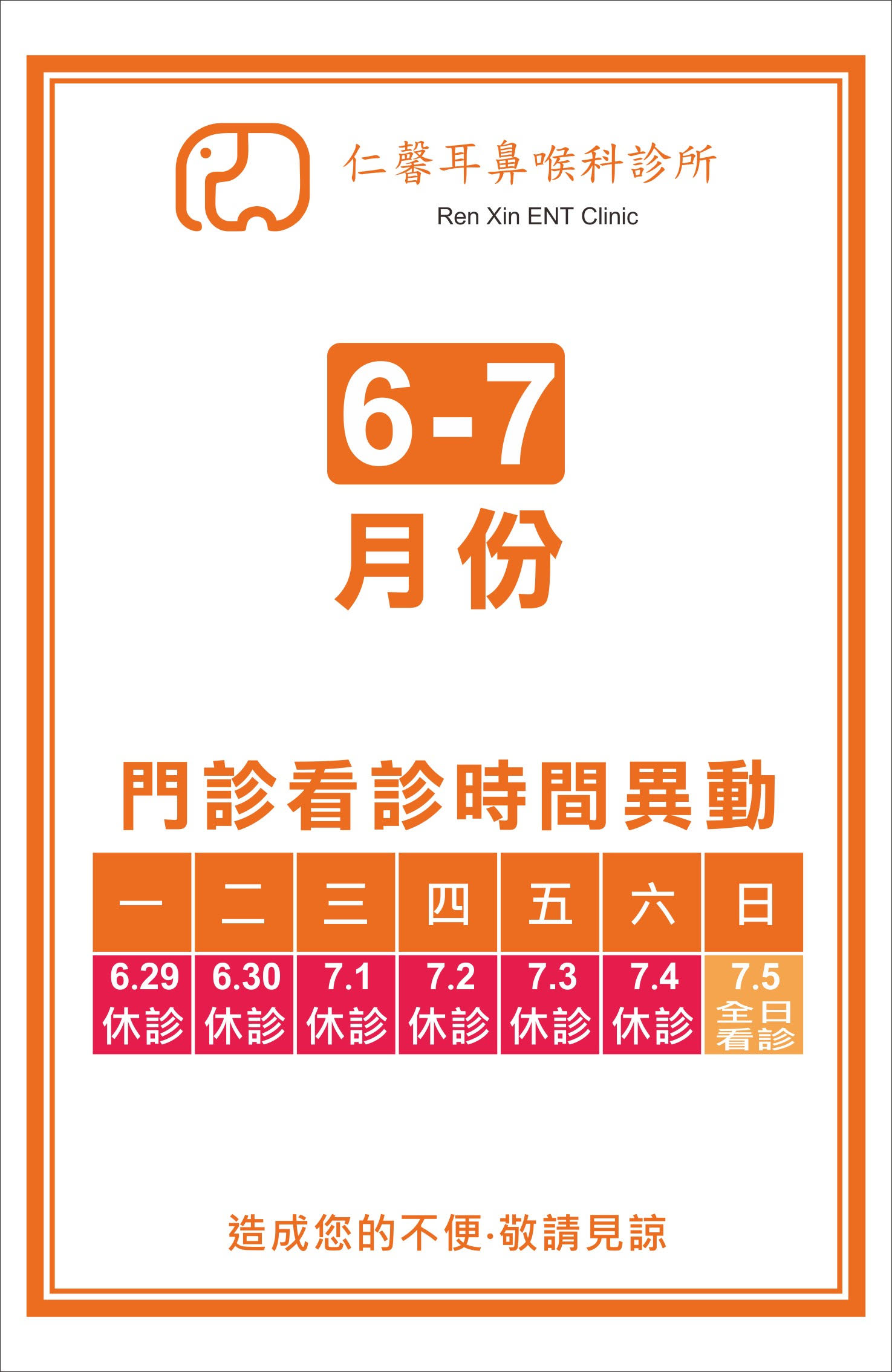 端午連假期間仁馨耳鼻喉科除了固定星期六休診日之外皆正常開診。