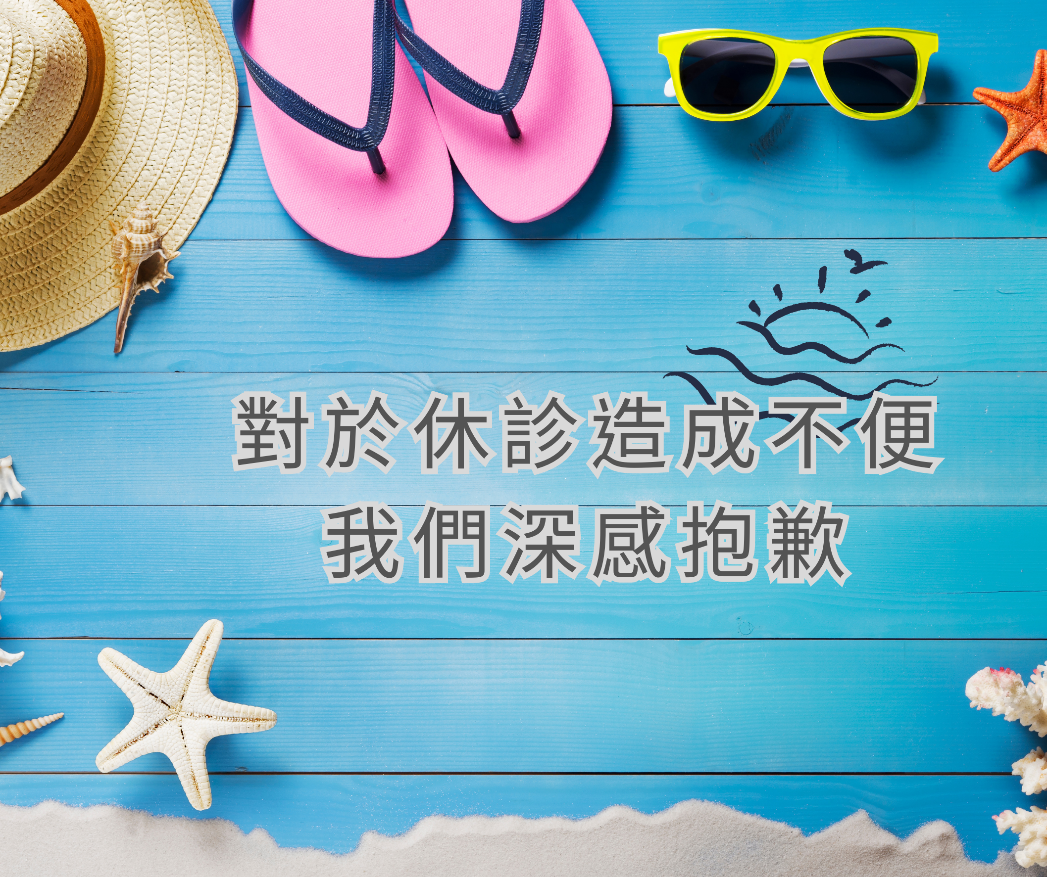 為了慰勞員工的辛勞,暑假期間讓員工多點時間可以陪伴家人,仁馨耳鼻喉科診所於7/24 (星期一)~7/29 (星期六)休診,7/30 (星期日)全天正常看診,造成不便敬請見諒,祝大家暑假出遊都能平安愉快!