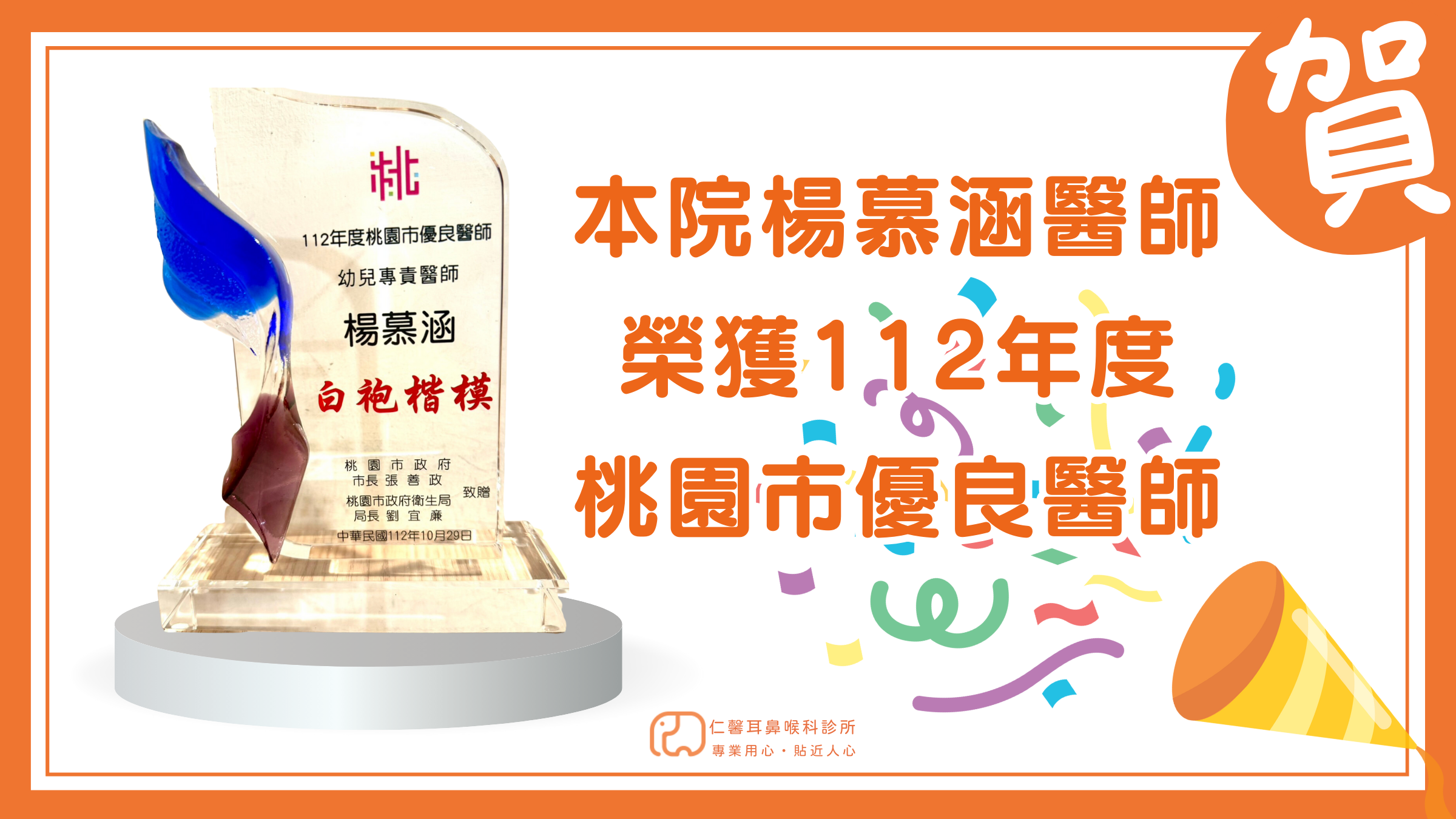 恭賀本院楊慕涵醫師榮獲112年桃園市優良醫師