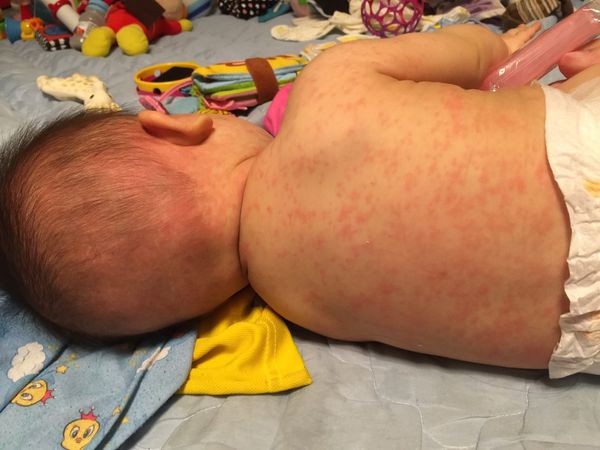 家長遇到小小孩持續發高燒真的很擔心,這一次來介紹一個很會燒的疾病,他叫做玫瑰疹 (roseola infantum,又稱為sixth disease),他主要是由第六型人類皰疹病毒傳染 (HHV-6),少數是由第7型傳染,好發在兩歲以下的小孩,常發生在春天跟秋天,主要是經由唾液飛沫傳染 (呼吸小滴),典型的症狀是一開始就發高燒 (可以高達40度!!)而且持續3-5天,然後燒突然就退了,取而代之的是軀幹出現一堆不會癢的粉紅色的丘疹,等疹子消失就痊癒了,由於高燒以及病毒可能穿越血腦屏障,所以有些小孩可能會發生熱痙攣,免疫功能正常的小孩基本上都會自己痊癒,但在先天免疫不全的病人身上可能會產生併發症。第六型人類皰疹病毒最常在白血球以及唾液腺複製增生,他有兩個亞型A跟B,最常造成玫瑰疹的是B型,急性期過後會藏在唾液腺跟腦組織中的T細胞和中性白血球中。